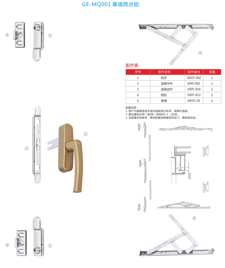 产品型号:GE-MQ001 产品名称:幕墙两点锁