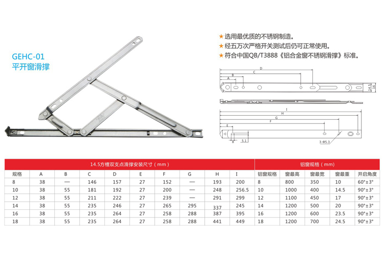 产品型号:GEHC-01 产品名称:平开窗滑撑