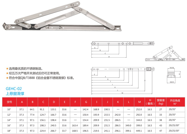 产品型号:GEHC-02 产品名称:上悬窗滑撑