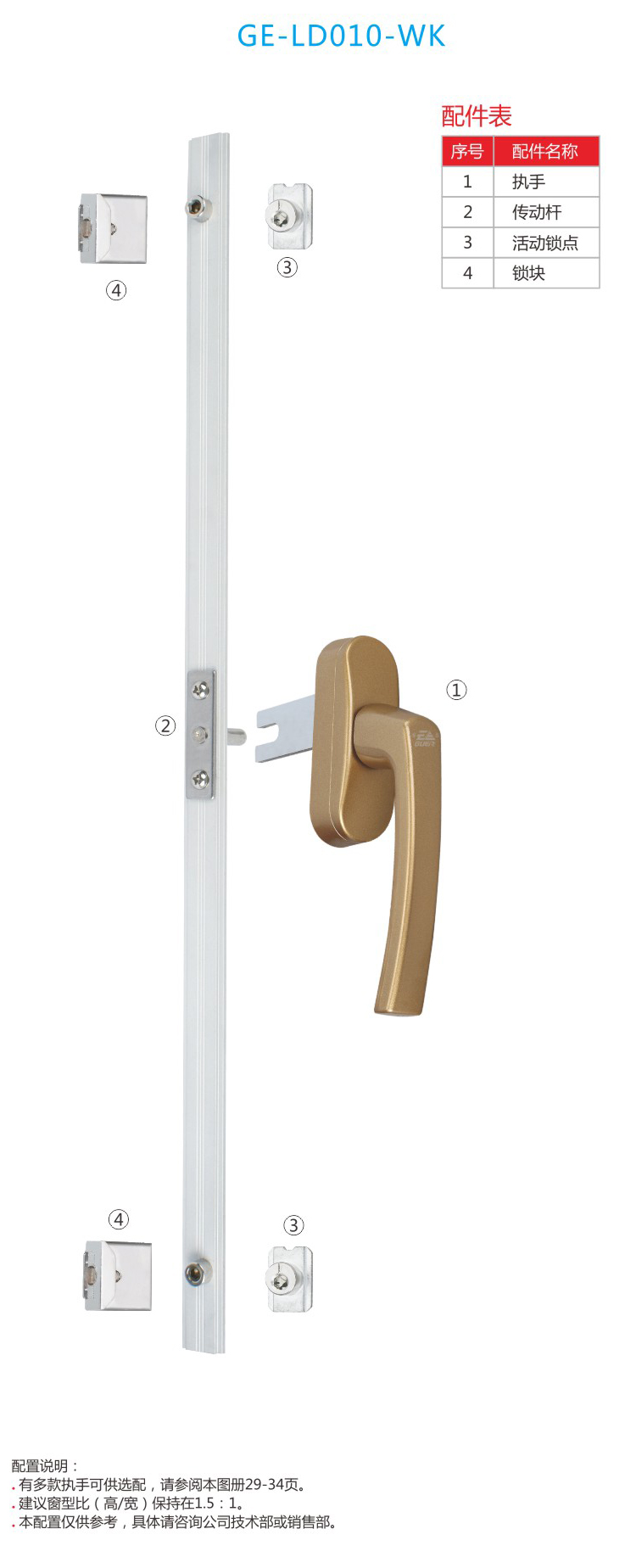 产品型号:GE-LD010-WK 产品名称:铝条两点锁