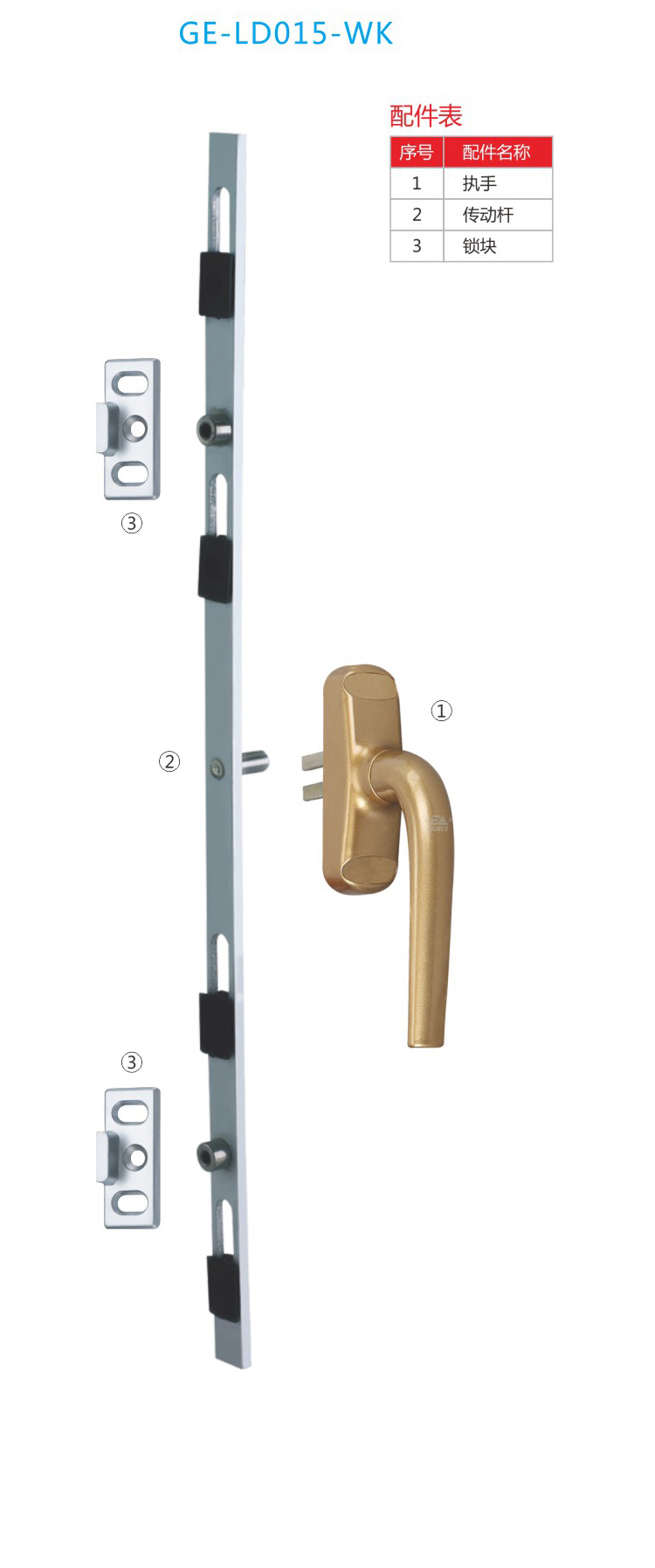 产品型号:GE-LD015-WK 产品名称:铝条两点锁