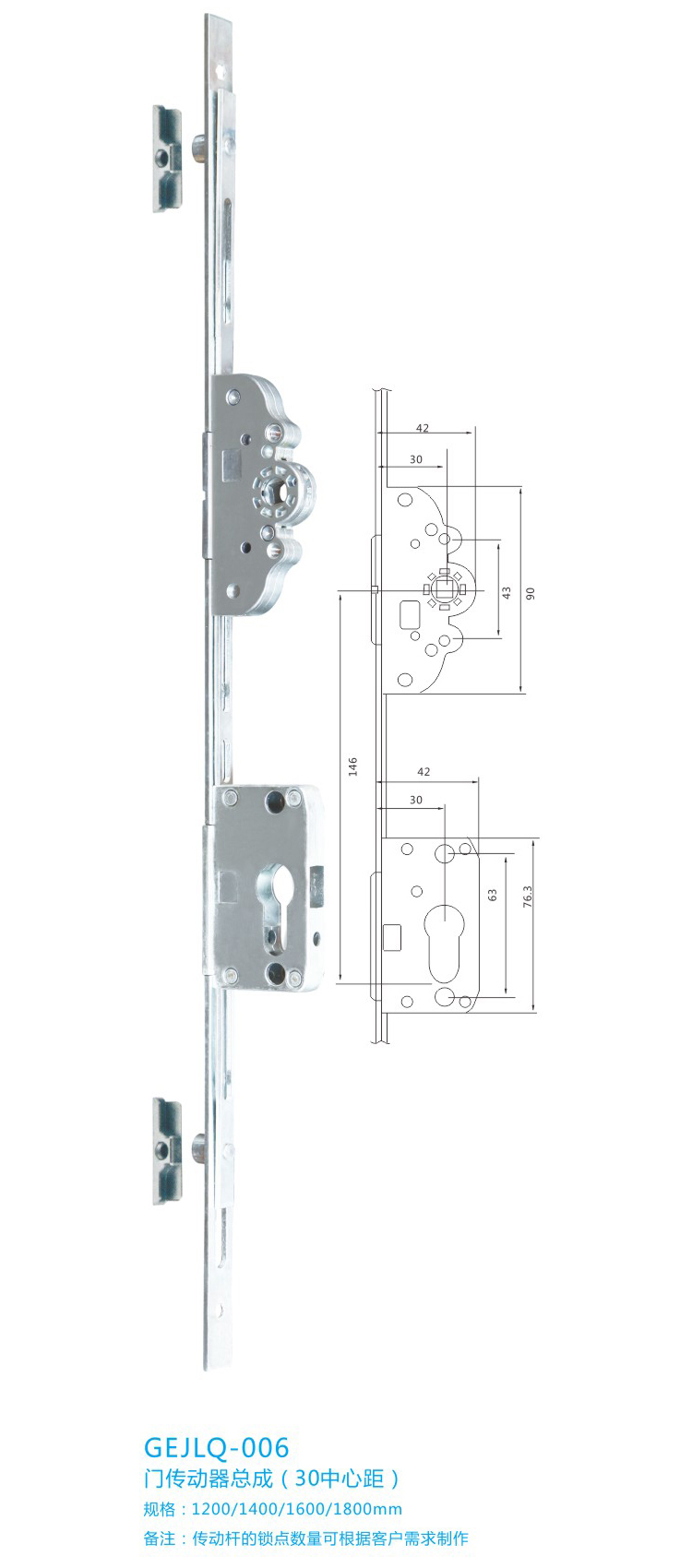 产品型号:GEJLQ-006 产品名称:门传动器总成(30中心距)